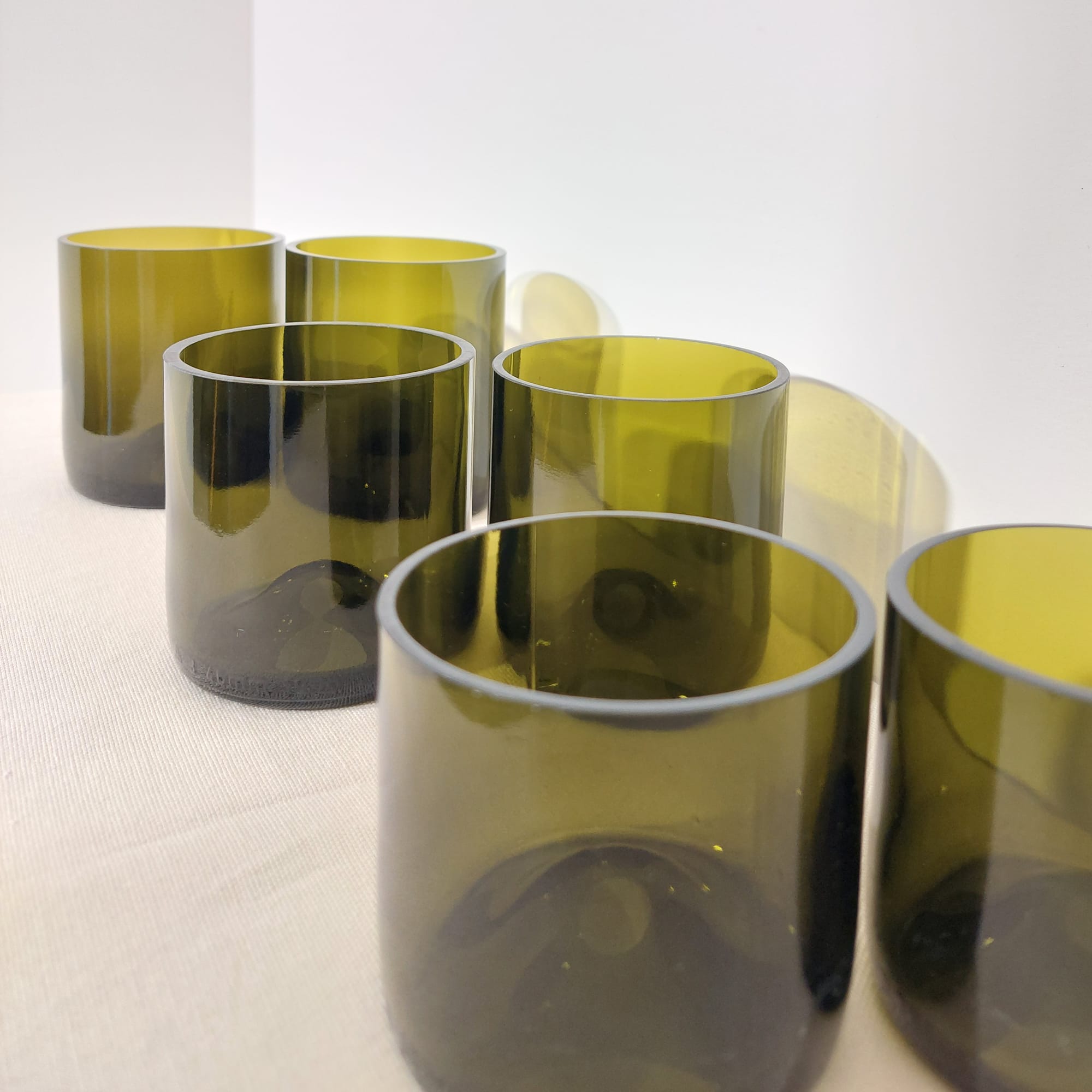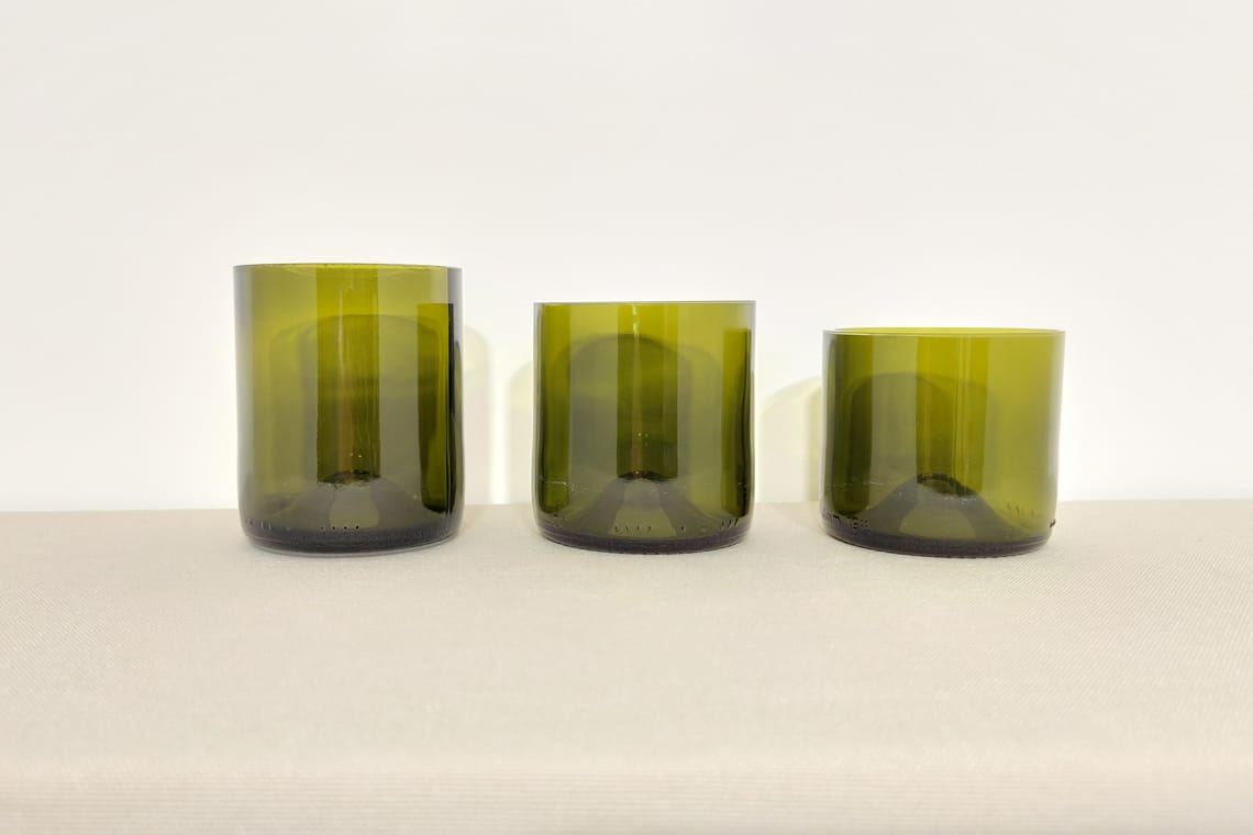 Entdecken Sie die Schönheit und Nachhaltigkeit unserer einzigartigen Trinkgläser, gefertigt aus sorgfältig geschnittenen und geschliffenen Weinflaschen.