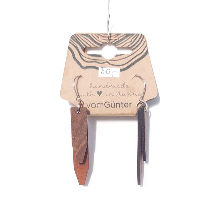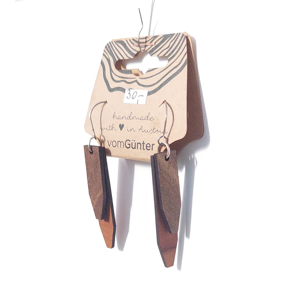 Gelasert/Handgefertigt & designt vomGünter. Feinstes Massivholz aus Österreich. Eiche. Gesamt: Höhe 6, Breite 3 cm. Esche. Gesamt: Höhe 8, Breite 4 cm.Holzohrringe #7 – großartig
