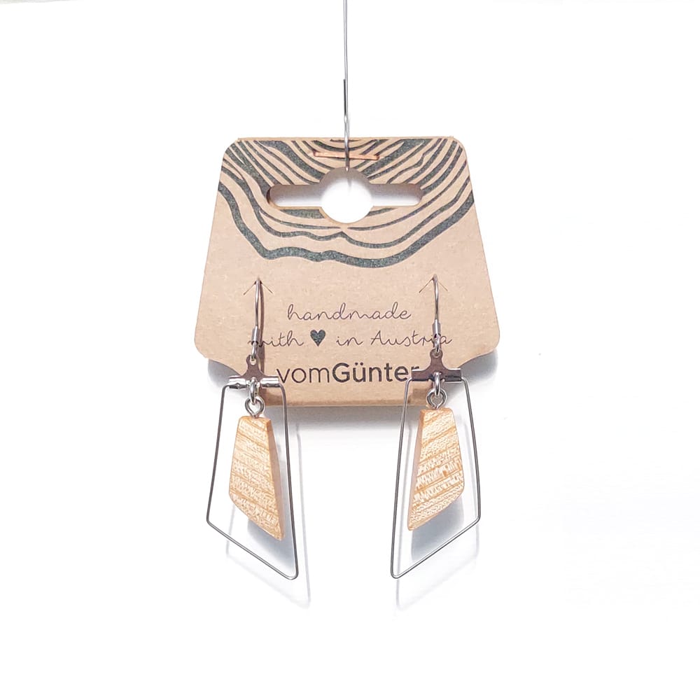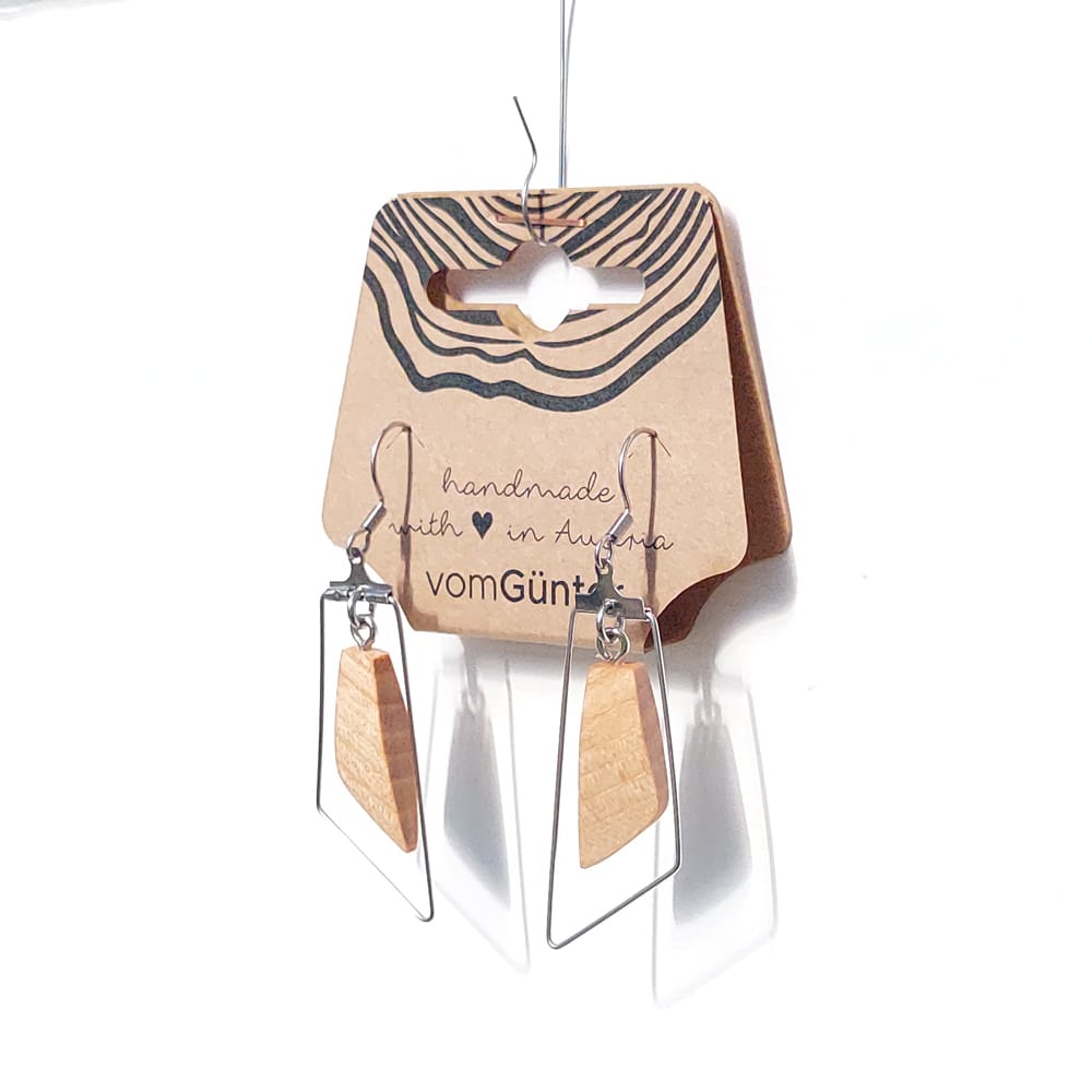 Gelasert/Handgefertigt & designt vomGünter. Feinstes Massivholz aus Österreich. Eiche/Ahorn. Gesamt: Höhe 6,5, Breite 4 cm. Ahorn. Gesamt: Höhe 6, Breite 4 cm.Holzohrringe #7 – großartig